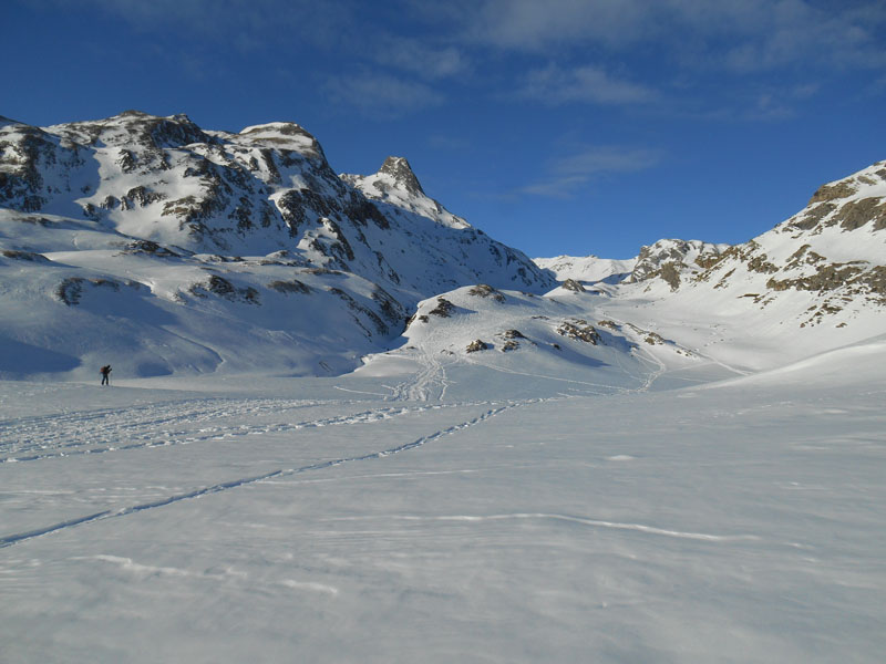 L'itinéraire glisse entre les rochers, les falaises et traverse des plateaux, frôlant les cabanes de la Glère, puis fuit sur le Plaa de la Gradillère. Quelques randonneurs à raquettes se dispersent dans les vastes espaces. Philippe se prend pour un isard dépassant la vitesse limitée.