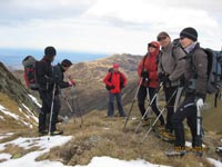 Nous chaussons les crampons à glace, pour affronter un couloir pentu de neige glacée. Nous atteignons un col, sur la Petite Estibère. Nous traversons, à nouveau une pente à forte déclinaison. Il s’agit de ne pas glisser. Nous remontons, accrochés à nos crampons et parvenons à la Grande Estibère. Il est midi. Nous déjeunons, installés sur des rochers.