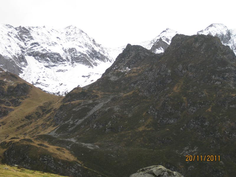 La descente de la longue pente neigeuse, nous entraîne sur une variété de terrains, où rochers, herbe, boue, rivalisent de pièges, avec les coulées et blocs de neige. Libérés des crampons, nous filons vers la petite cabane et le lac Dets Plagnous (1729 m) ; La suite est un long chemin tranquille, qui nous dépose, à 15h35, aux véhicules. Un bar à Argeles, nous abreuve, sous les commentaires de cette belle randonnée, où nous nous sommes accrochés à nos crampons.