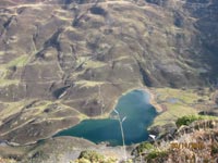 Dans la descente par un autre chemin, nous rencontrons une petite cabane, bien équipée et plus bas un petit lac rond perdu dans l’immensité.