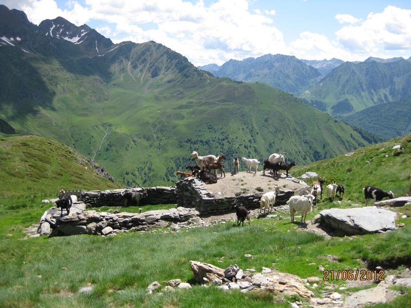 Un troupeau de chèvres nous observe curieusement. Deux marmottes surprises par mon passage se cachent précipitamment. Après une longue traversée, j’atteints le col de Coume de Port, à midi et demi. Frédéric arrive peu après. Nous n’avons plus le temps de gravir le Soum de Nère.