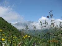 Le repas terminé, nous redescendons. Frédéric a beaucoup de succès avec les chèvres. Je ne commenterai pas quelques ressemblances. Un troupeau de vaches nous dévie du sentier et nous nous égarons sur des pentes et des sentes abruptes. Heureusement, nous sommes dans la bonne direction et nous récupérons le sentier GR. D’ailleurs les nuages gagnent les cimes et le vallon. Nous aurions pu nous perdre !