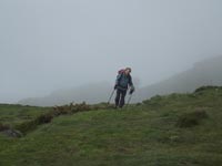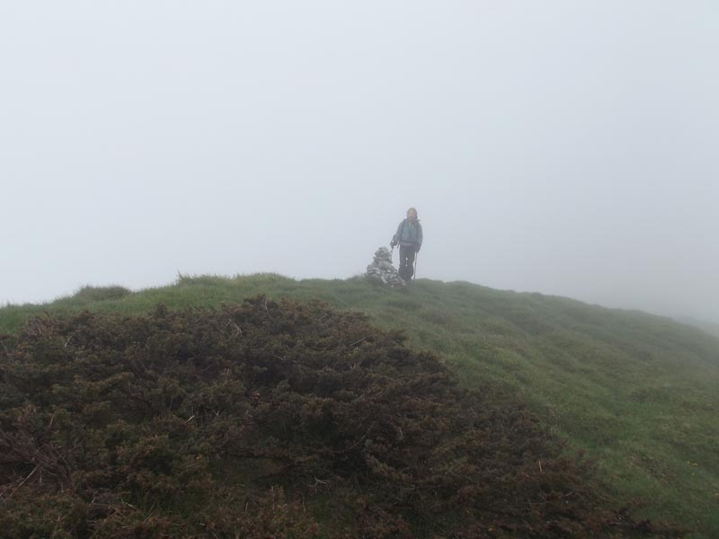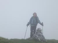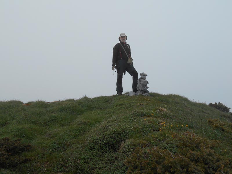Nous parvenons au Soum de Conques, vers 11 h, signalé par un cairn élevé. Malgré un brouillard épais, nous poursuivons la crête qui file vers l'inconnu. Un nouveau sommet, quelconque, se présente, mais nous continuons cherchant le Soum de Las Escures. Nous finissons par nous perdre et remonter au même sommet deux autres fois.Carte, altimètre, boussole sont nécessaires, puisque nous avons perdu le nord. Nous partions même à l'opposé !