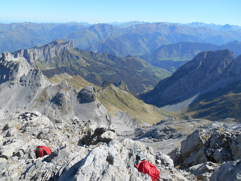 Comme une dizaine de montagnards, nous déjeunons tout en observant l'horizon. Les cimes défilent, de la vallée d'Ossau, pic du Midi, Balaïtous, les sommets espagnols, Visaurin, Castillo de Acher, Aiguilles d'Ansabère, Table des Trois Rois, la Pierre Saint Martin, etc.