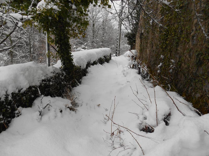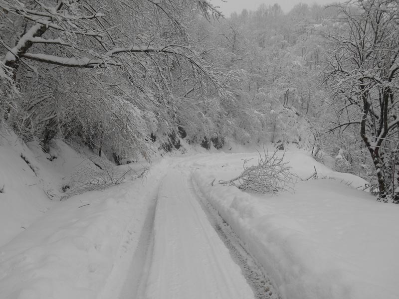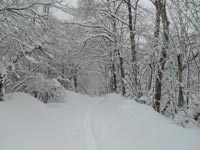 Il est 9 h 30, nous partons skis aux pieds sur la route enneigée. Les branches des arbres plient sous le poids de la neige. C'est un décor féerique, un décor de noël, qui se déplace sous nos yeux, au fur et à mesure que nous avançons. De temps à autre une branche plie, comme pour nous saluer et jette des étoffes de neige, en guise de bien venu.