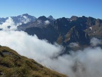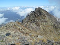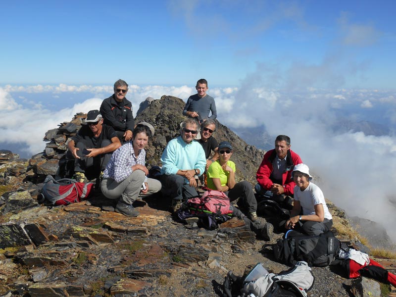 Nous nous engageons dans la longue crête aérienne, des Taillades Blanques. La crête oscille entre sentier, passages étroits exposés et succession de sommets et rochers à escalader sur quelques mètres. C'est à 12 h 30 que nous atteignons le Grand Gabizos, ou pic des Taillades. Nous profitons de la vue sur les hauts sommets, alors que le brouillard s'installe vers le bas. Pendant le repas, Jacques nous sert un vin délicieux de Pomerol. Est-ce l'ivresse de l'altitude, ou les parfums du vin, divin ? Mais la crête est franchie plus rapidement, sans appréhension, dans l'euphorie d'un sommet conquis.