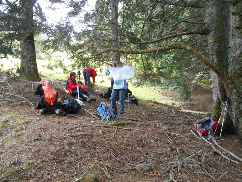 Le vent souffle. Des gouttes de pluie tombent. Nous montons sur la crête de Saubajot, par des sentes de bruyères , des myrtilles délicieuses et même des champignons, que certains n'hésitent pas à déguster.