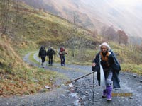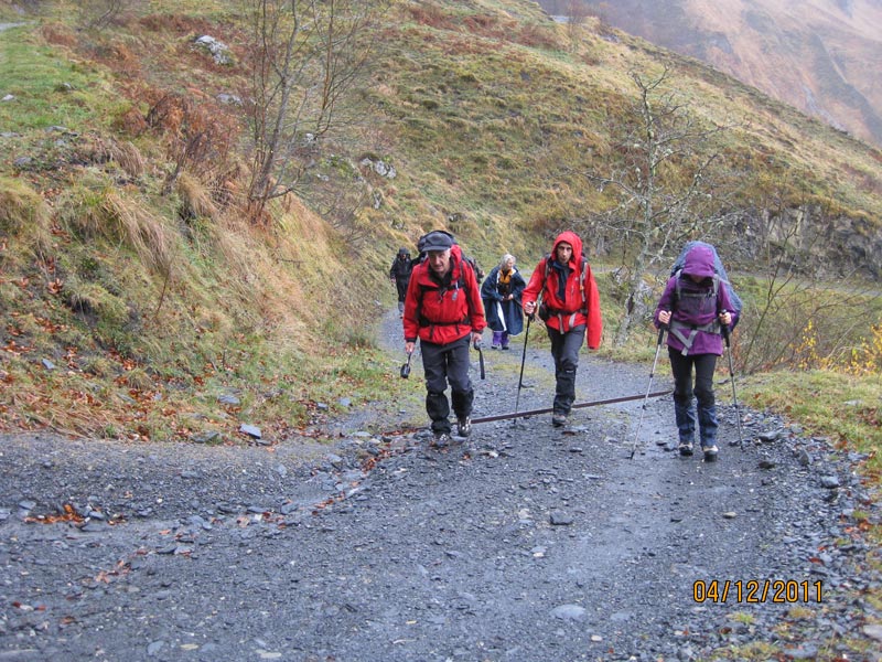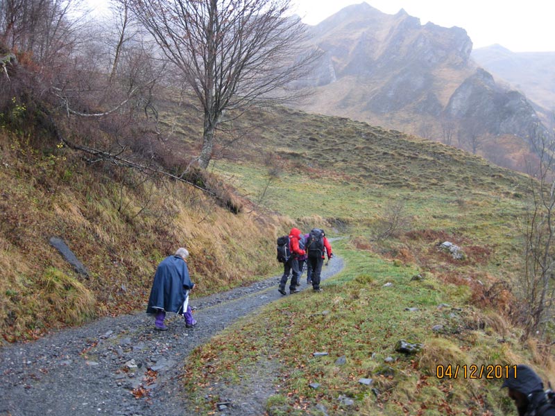 Mes amis s’étant désistés je vais tenter une randonnée, en solo, vers le plateau de Castet. Passant par Gan, vers 7h 25,je rencontre Francis et 6 camarades du club des montagnards aubinois,Jacqueline et Philippe que je connais, Pierrot,Dominique,Babeth et Chakib. J’accepte de partir avec eux vers le vallon d’Aspeigt. Nous nous garons prés d’une cabane et à 8 h 30, nous prenons la piste qui longe le bois de Boila. Le ciel est gris et la fraîcheur signale l’arrivée de l’hiver, toujours sans neige.