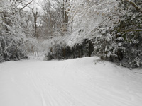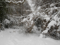 Nous montons à Castet, car les routes après Laruns sont fermées. A 9 h 35, nous prenons un chemin forestier. Les branches des arbres plient sous le poids de la neige, qui s'accumule.Malgré un ciel très bas, le paysage a revêtu un décor de conte de fée, la neige éclairant les lieux de sa blancheur immaculée.