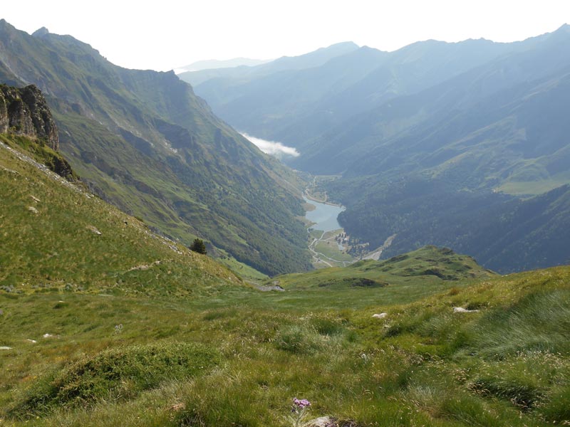 A l'Est, le lac d'Estaing brille de mille feux. Les cimes se heurtent au pic de Liou, ou au Monné. Un rocher sur le col, côté nord, barre tout passage. Au sud et à l'ouest le Balaïtous, le Palas et autres cimes imposent leur hauteur, démarquant les vallées.