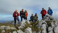 Nous suivons la Coume de La Houlette, qui du Pène Arrouye nous amène au pic Haboura (1628 m.), dans le secteur Caoutérou, à 11 h 40. Le pic du Casque du Lhéris est tout proche, comme le Soum Ara et la Montagne de Billexe. A l'est le Signal de Bassia s'impose. Les cimes du vallon d'Arize et de La Mongie se cachent dans les nuages, à l'ouest. Nous descendons dans la Coume de Bourguigna et protégés du vent , nous déjeunons.