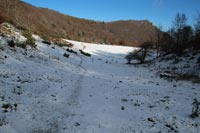Nous traversons les pentes du secteur d'Ilhans et passons sur le sentier botanique. Le chemin sinueux grimpe au col des Portes ( 1229 m.). Dans un paysage de neige splendide, nous abordons le vallon près de Roc de Darré Espouey.