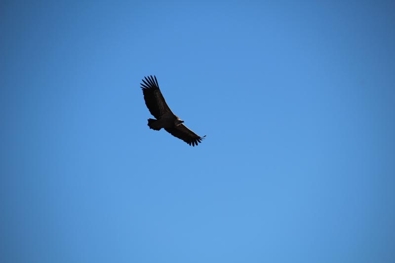 Plus que quelques mètres de montée et nous atteignons le pic de Pibeste, véritable belvédère, à 12 h15. Nous scrutons la plaine, au nord, le lac de Lourdes et la ville, ainsi que les villages proches. Nous déjeunons calés dans les rochers et au soleil admirant les vautours qui tournoient au-dessus de nos têtes.